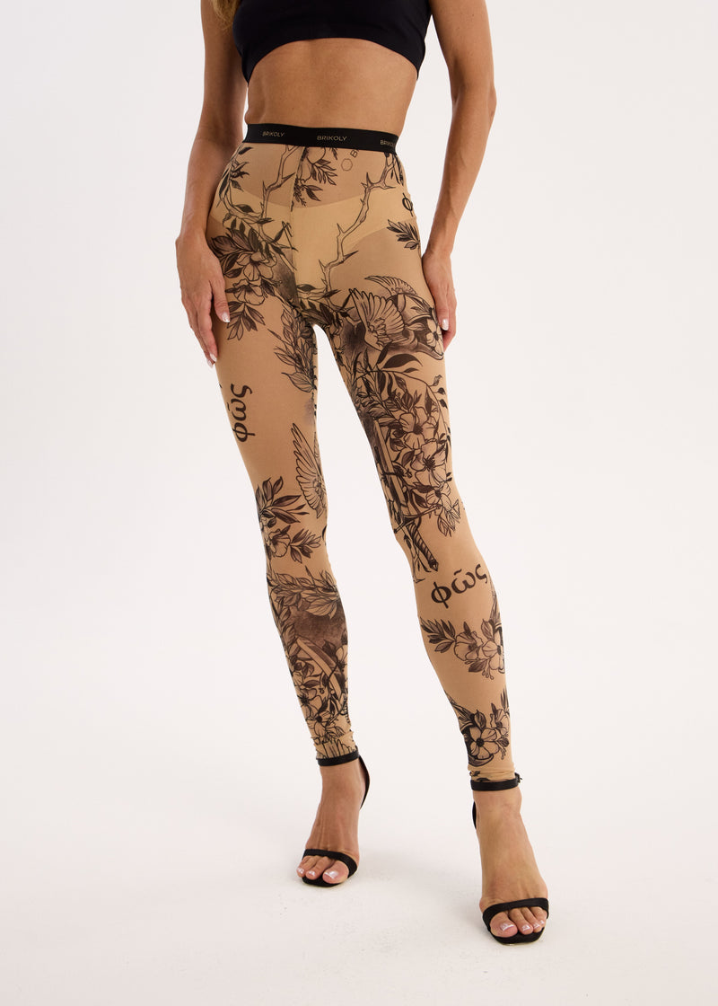 BRIKOLY Antik Sheer Mesh Tattoo Effect Leggings for Women