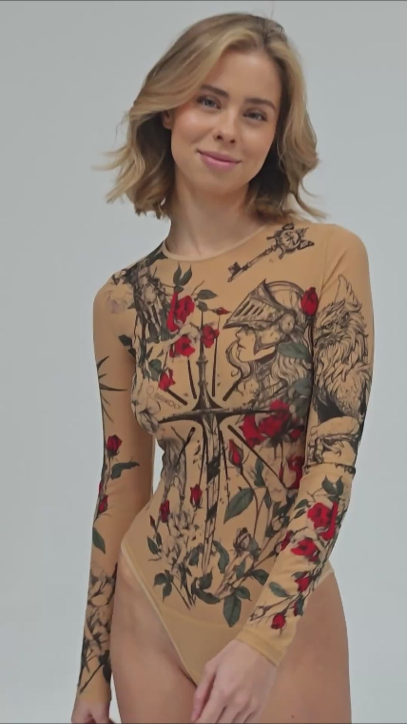 Sheer Mesh Bodysuit for Women – Long Sleeve Tattoo Style | The Medieval