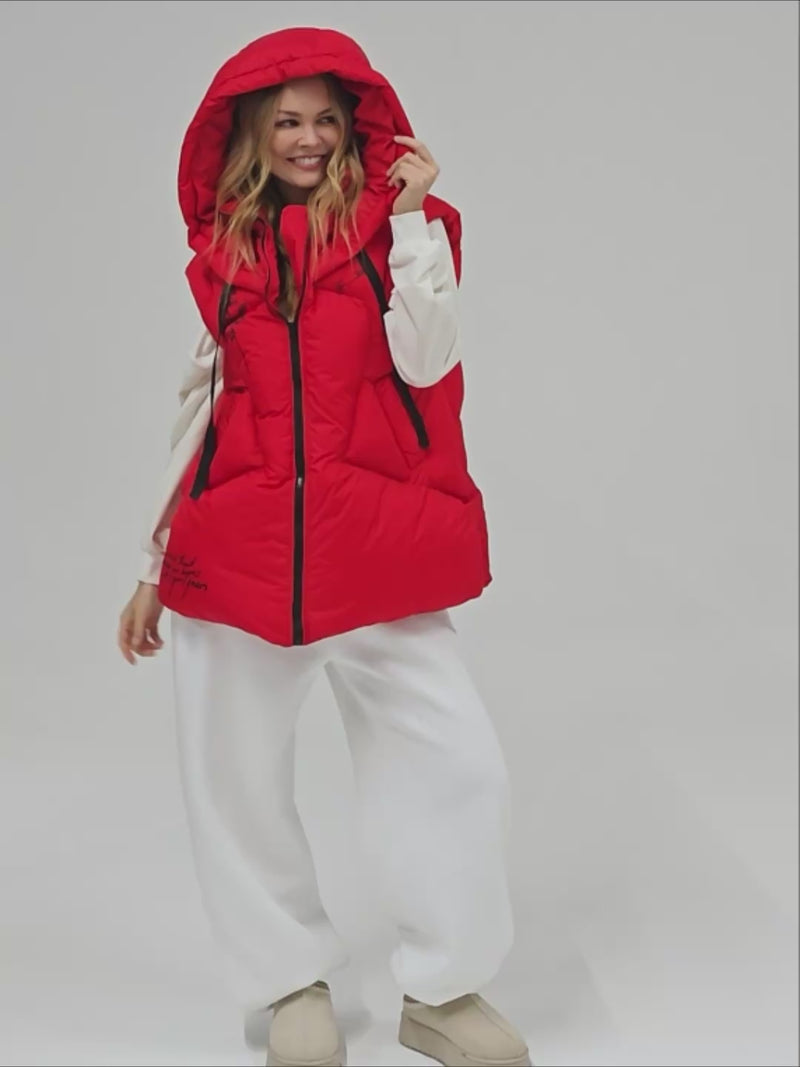 Red Accent Women’s Hooded Vest