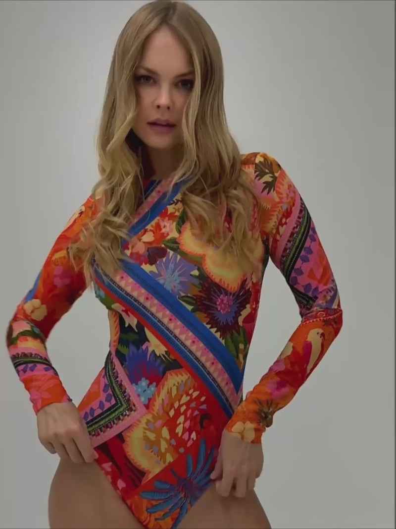 Smart Swimsuit with SPF 50 protection and unique dragon design with long sleeves